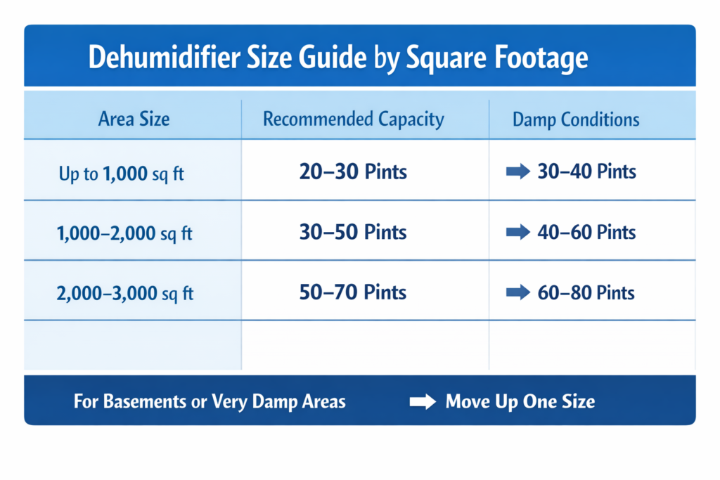 Dehumidifier Size by Square Footage (General Guide)
